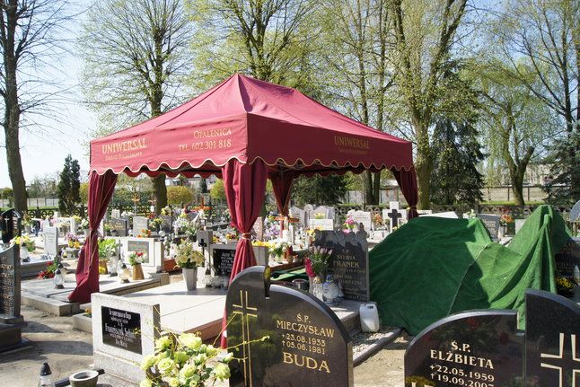 - winda , namiot ,nagłośnienie i wystrój przy grobie, odtwarzanie dowolnej muzyki na zakończenie pogrzebu